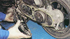 Для совсем чайников объясню как действует клиноременный вариатор, применяемый на большинстве японских скутеров. Вариатор состоит из клинового ремня и двух шкивов. Клиновой ремень - это ремень, который касается шкива только боковыми поверхностями. В сечении он имеет трапециевидную форму. Когда ремень проходит по шкиву, то под действием силы натяжения он расклинивается в его ручье - от этого и название. Шкив клиноременной передачи представляет собой две конусные поверхности - "щеки шкива", зазор между которыми называется "ручей". Шкив, вращаемый двигателем, называется ведущим, шкив с которого производится отбор мощности - ведомым. Ведомый шкив на моем скутере совмещен с центробежным сцеплением, вращение с котроого передается на редуктор заднего колеса.